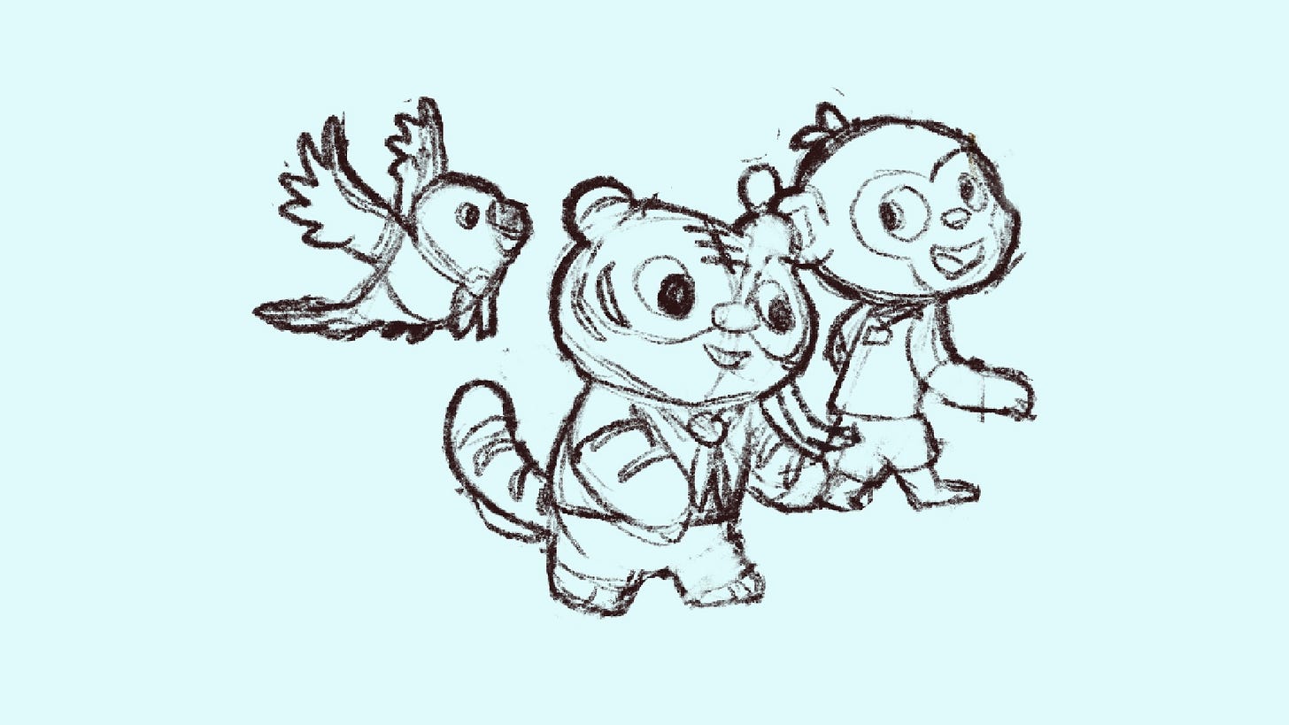 El estilo plano y vectorial que solía usar quedó atrás. Para darle más fluidez y naturalidad a los personajes, los dibujé aparte, enfocándome en que se sintieran más gestuales, más vivos.