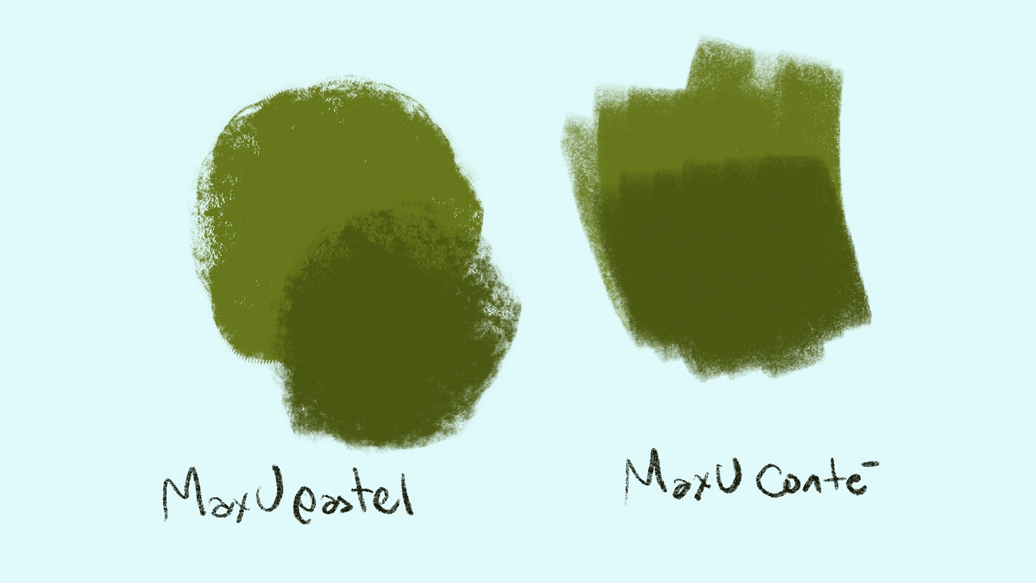 Esta vez, opté por lo sencillo: pinceles que imitan medios como la tiza y el conté. Me gustó la calidez que aportan y la manera en que rompen la limpieza digital sin perder control sobre la imagen.